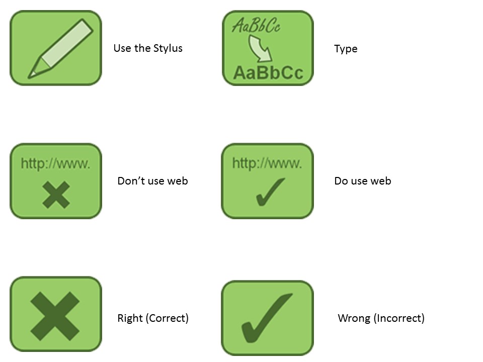 So I wondered what this would look like in education.  Specifically in anything students had to interact with, such as instructions from a PowerPoint slide, a OneNote page for them to work on, or even a printed handout..  Here are the icons that I can up with (all made using PowerPoint and royalty free icon stock), and the description of what they mean for the students: