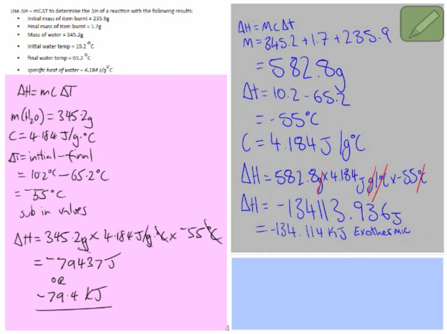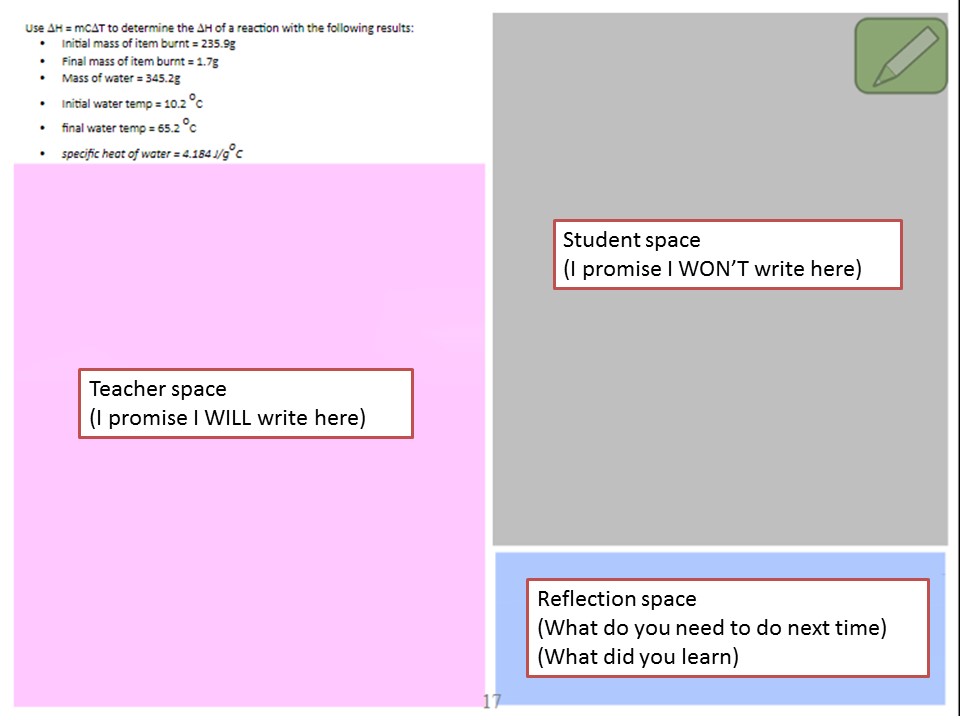 In this example, you can see the students work which was done without support (and has an error), and my “correct” answer which was added after.